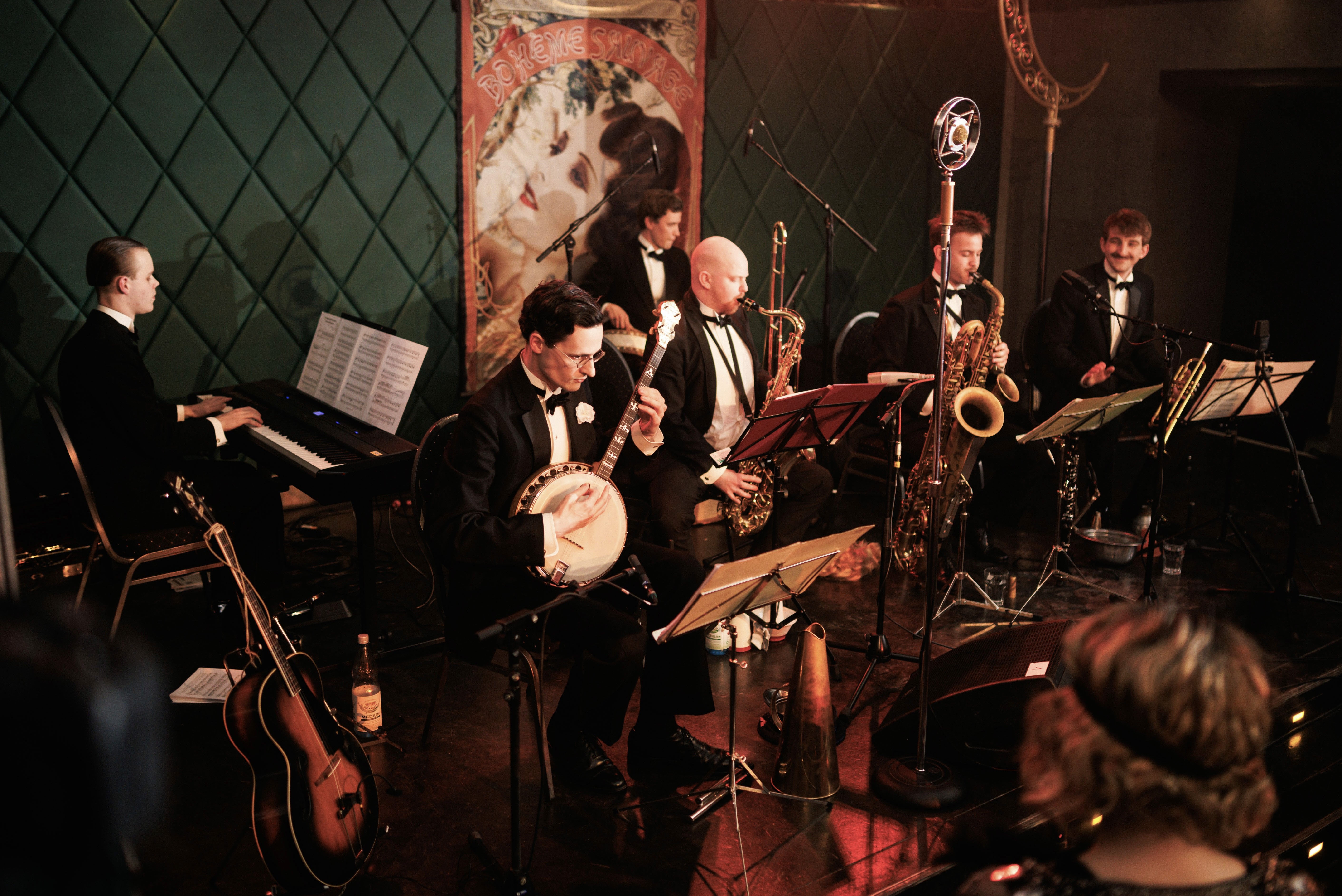 Die 1924 gegründeten „Weintraubs Syncopators“ waren mit Sicherheit die spektakulärste Jazzband der Weimarer Republik. Hot- Solistik, fliegende Instrumentenwechsel und ihr Humor machten ihre Auftritte legendär. Die „Federolfs Syncopators“ bringen nun dieses einzigartige Repertoire der 20er Jahre für Sie zurück auf die Bühne.